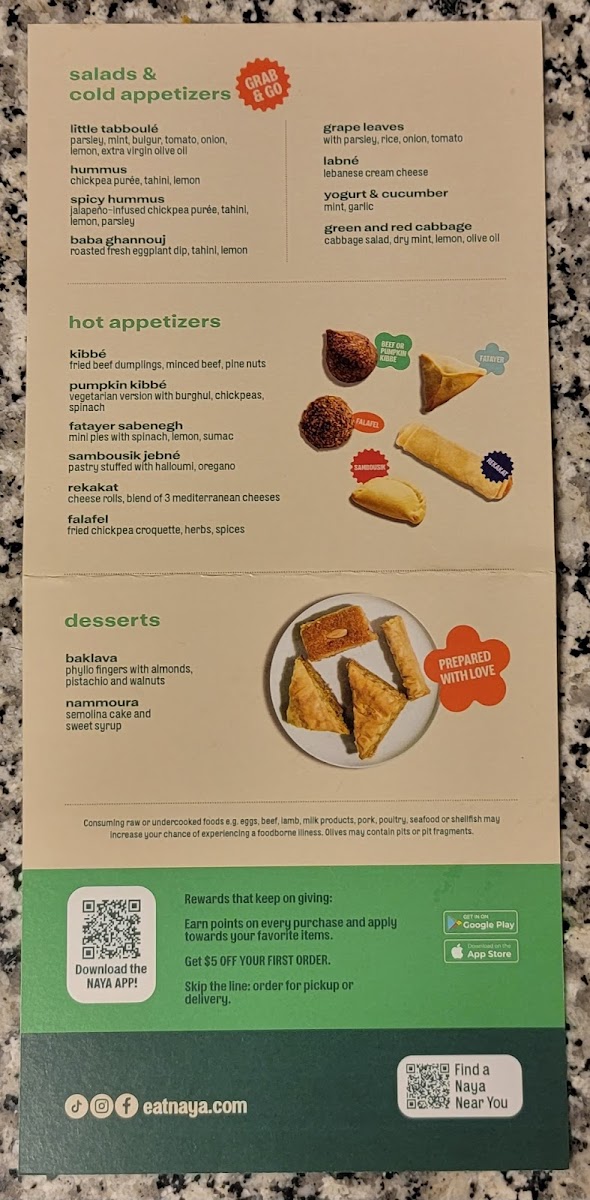 Meet za’atar, a Lebanese classic. Oregano, sumac and toasted sesame seeds bring an aromatic touch to dips, marinades or rubs. Try a dash over NAYA’s Labne, or combined with olive oil for pita bread dippin’.